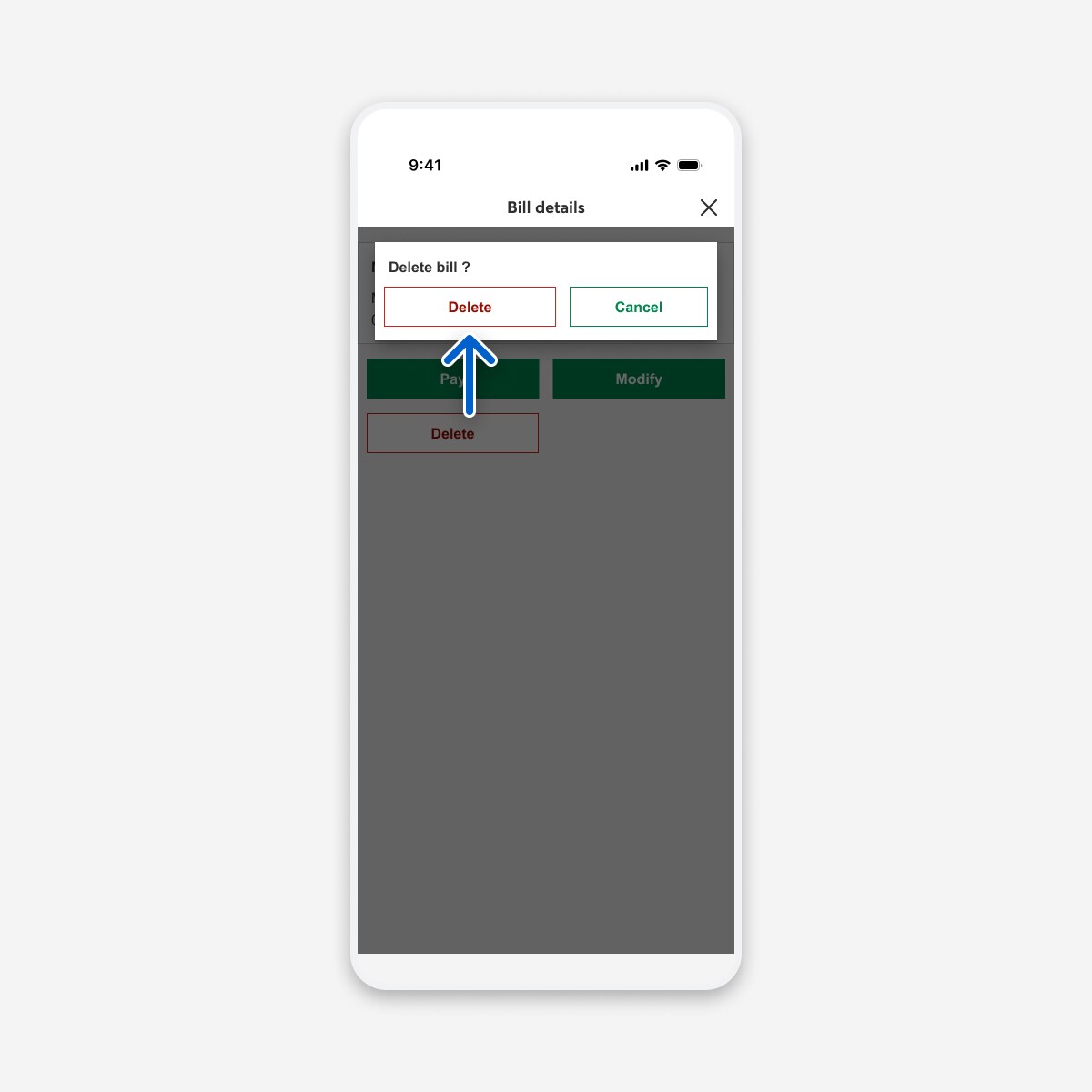 In the Modify or delete a bill tab, select the bill you want to delete, then select the Delete button.