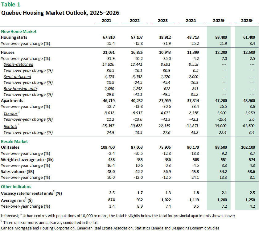 Price growth should ease in the months ahead, creating opportunities for buyers looking to get on the property ladder. However, persistently high costs and a limited supply of units destined for sale may keep some segments, such as single-family homes and plexes, under pressure. The current economic uncertainty also entails risks that could change our forecast. The way federal and provincial governments implement their immigration policies will directly influence housing demand. As for supply, high construction costs and persistent trade tensions with the United States could discourage developers from investing despite incentives to boost new residential construction.
