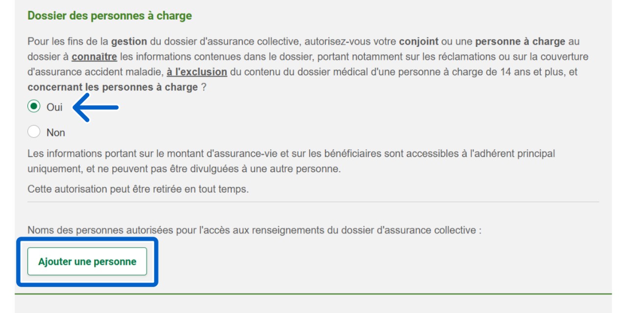 Comment autoriser l’accès des personnes à charge au dossier d’assurance collective?