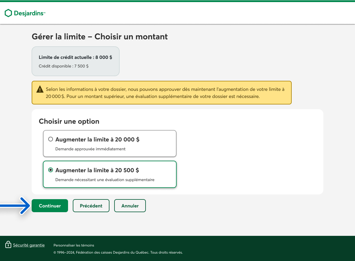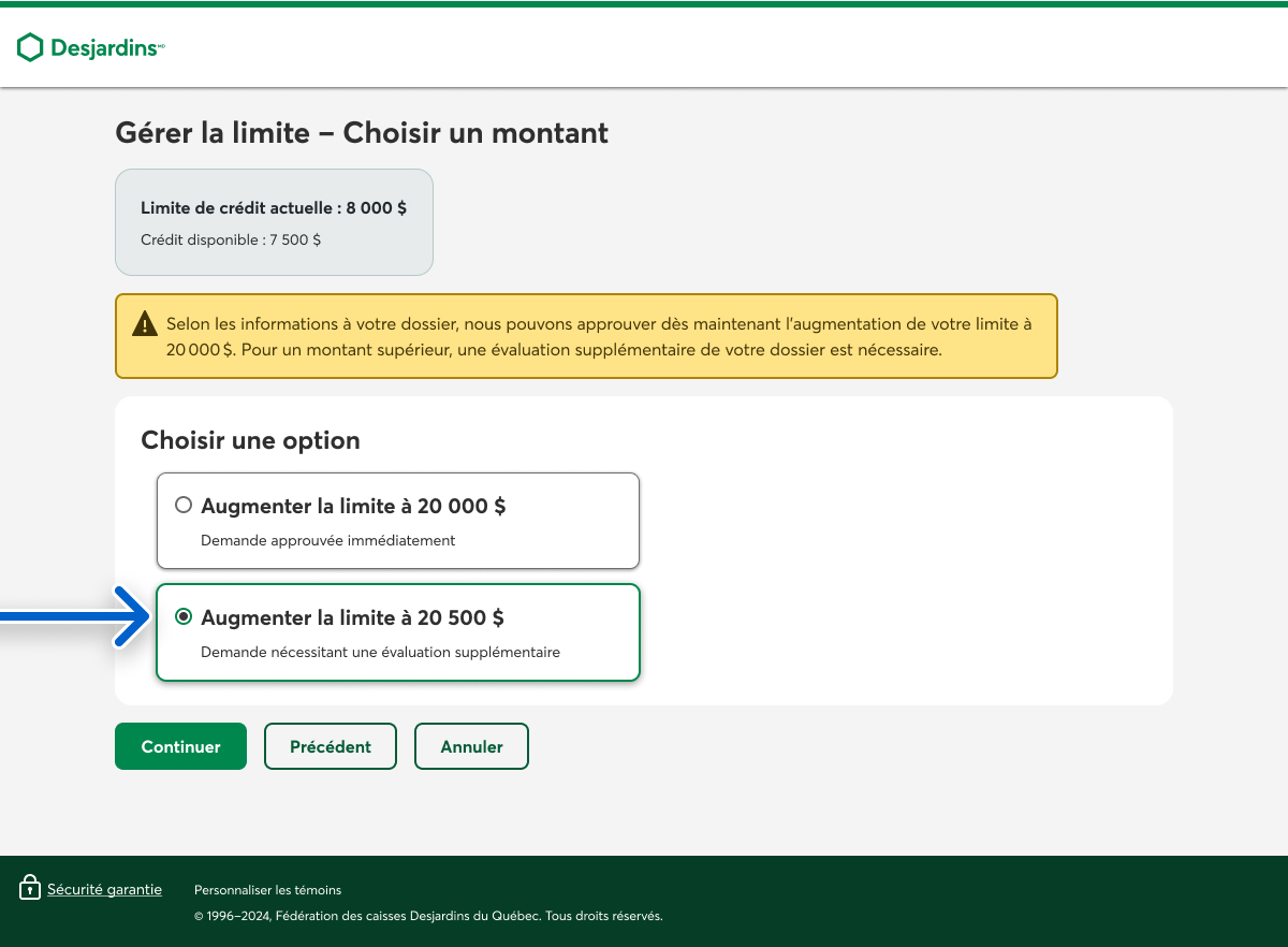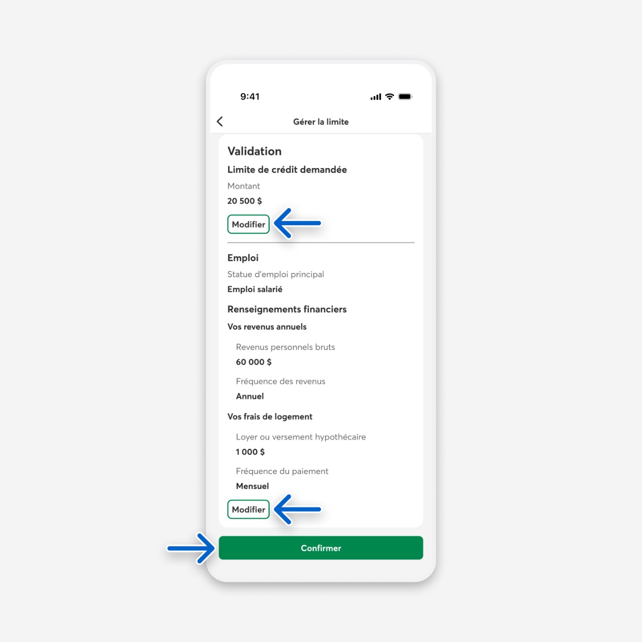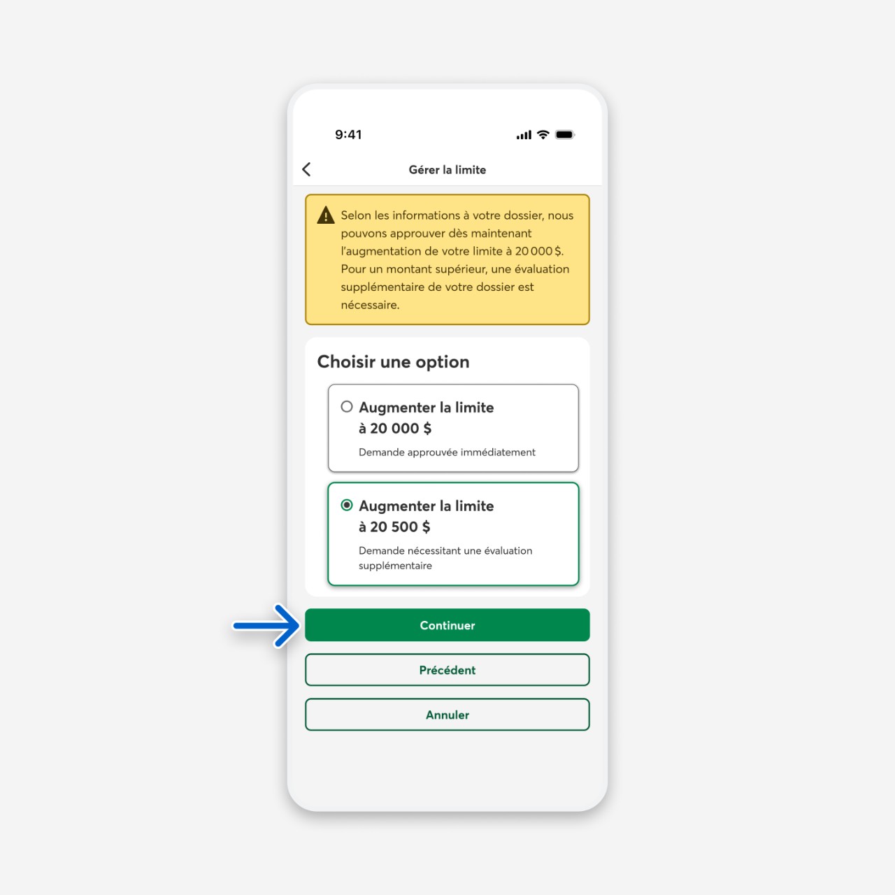 Les étapes de cette section s’adressent uniquement aux personnes qui peuvent profiter d’une limite de crédit supérieure au montant demandé à l’étape précédente.