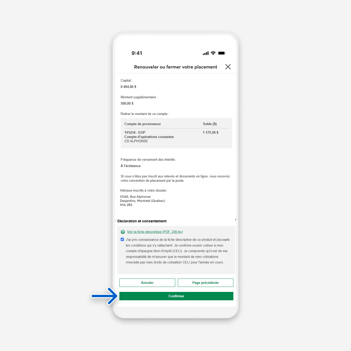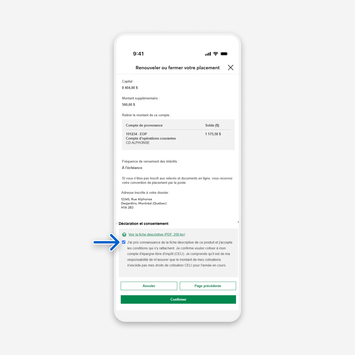 Renouvelez votre placement garanti lié aux marchés dans AccèsD à partir de votre appareil mobile ou de votre ordinateur.