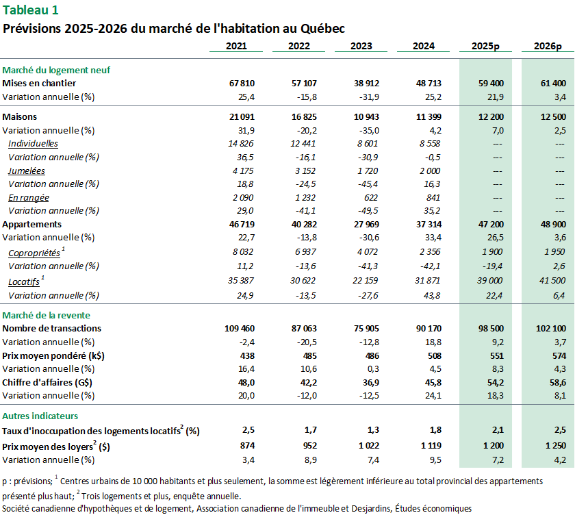 La progression des prix de vente devrait également se modérer au cours des prochains mois. Cette évolution pourrait représenter une bonne occasion pour les acheteurs potentiels qui souhaitent accéder à la propriété. Cependant, la persistance des coûts élevés et la rareté des logements destinés à la propriété pourraient maintenir des tensions sur certains segments, notamment les maisons unifamiliales et les plex. L’incertitude économique actuelle entraîne également plusieurs risques susceptibles de modifier ces perspectives. La manière dont les gouvernements fédéral et provincial appliqueront leurs politiques d’immigration influencera directement la demande résidentielle. Du côté de l’offre, les coûts élevés de construction et les tensions commerciales persistantes avec les États‑Unis pourraient freiner l’investissement des promoteurs, malgré les incitatifs mis en place pour stimuler la construction de logements.