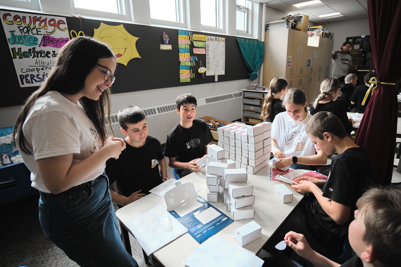 Grâce à un Prix Fondation Desjardins, l’école a pu se procurer tout le nécessaire pour créer différentes saveurs de thé. Après la production, les élèves ont vendu des coffrets de thé, mais surtout, ils ont visité une résidence pour personnes âgées afin de partager un moment chaleureux avec les membres de leur collectivité.